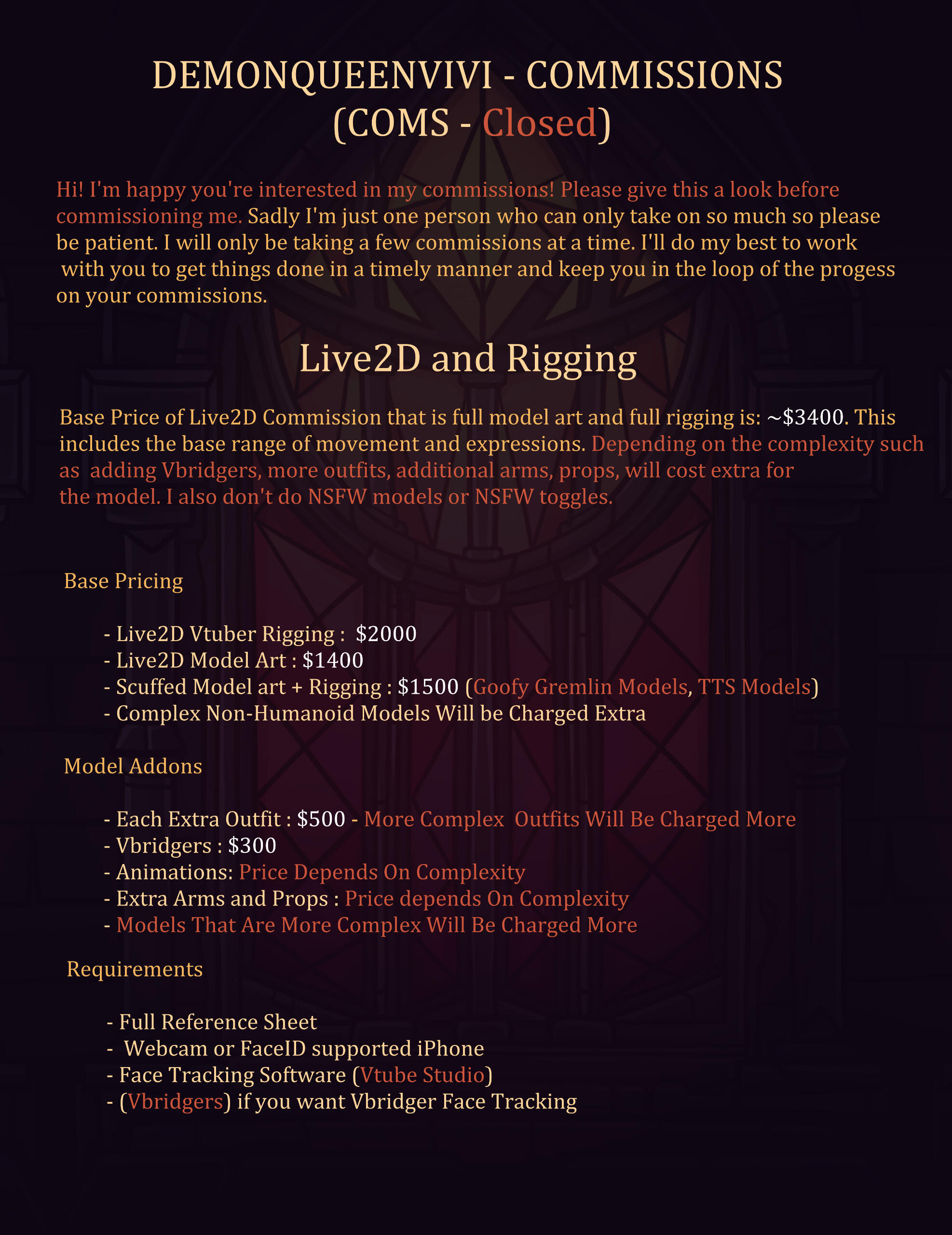 Hi! My name is Vivi and I'm a demonic evil changeling who has a passion to draw butts and live2d models of the gremlin variety. I'm also a stinky Vtuber who makes chihuahua noise on stream and draws for your entertainment.I also do commissions -Closed-